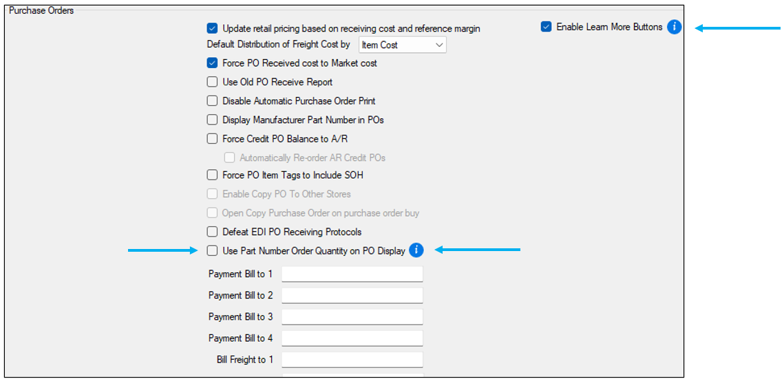 • To always see the manufacturer’s number, check Display Manufacturer Part Number in POs.