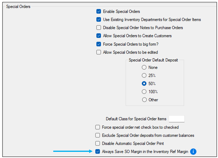 - Add Special Order Margin Percentage to the Inventory Ref Margin