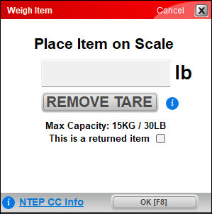 - Place the item on the scale and press OK [F8].