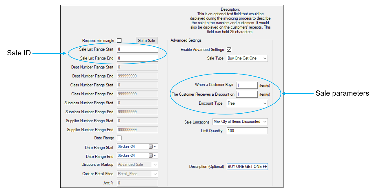 | Description (Optional) | Customize the description for this BOGO sale. The character limit is 25. |