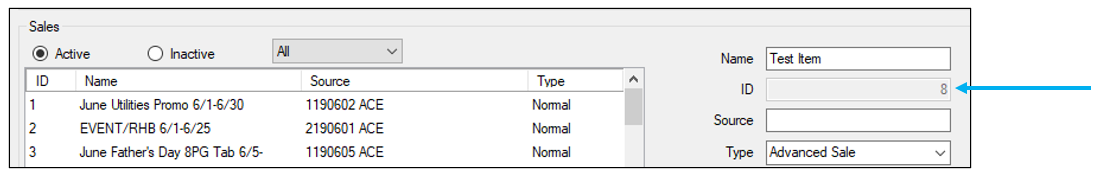 - In the ID box, enter a unique identification for the sale.