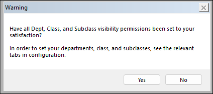 Note: In the PaladinShop tab, pressing Refresh Data will open a message window asking if the Dept, Classes, and Subclasses are configured correctly.