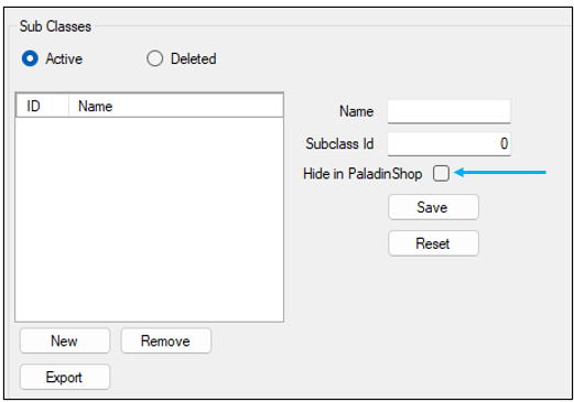 - In the Sub Classes pane, check Hide in PaladinShop.