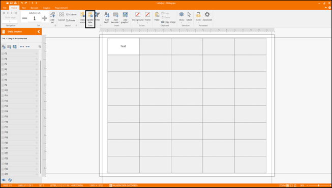 - On the left side of the LabelJoy screen, under Data source, drag and drop the desired fields on to the label to start designing.