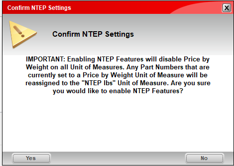 When checked the Confirm NTEP Settings window opens.