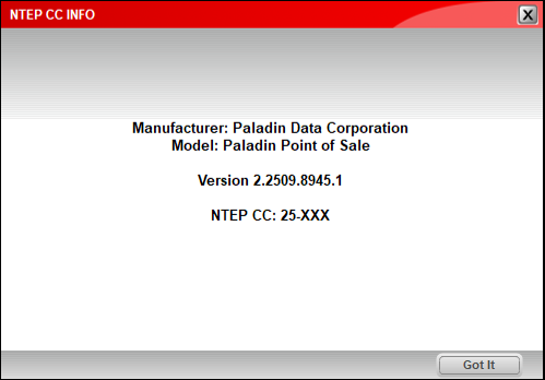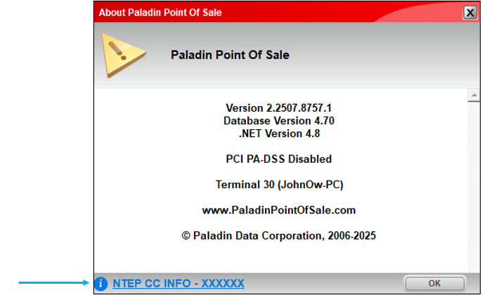 Figure 2: About Point Of Sale window/NTEP CC INFO link