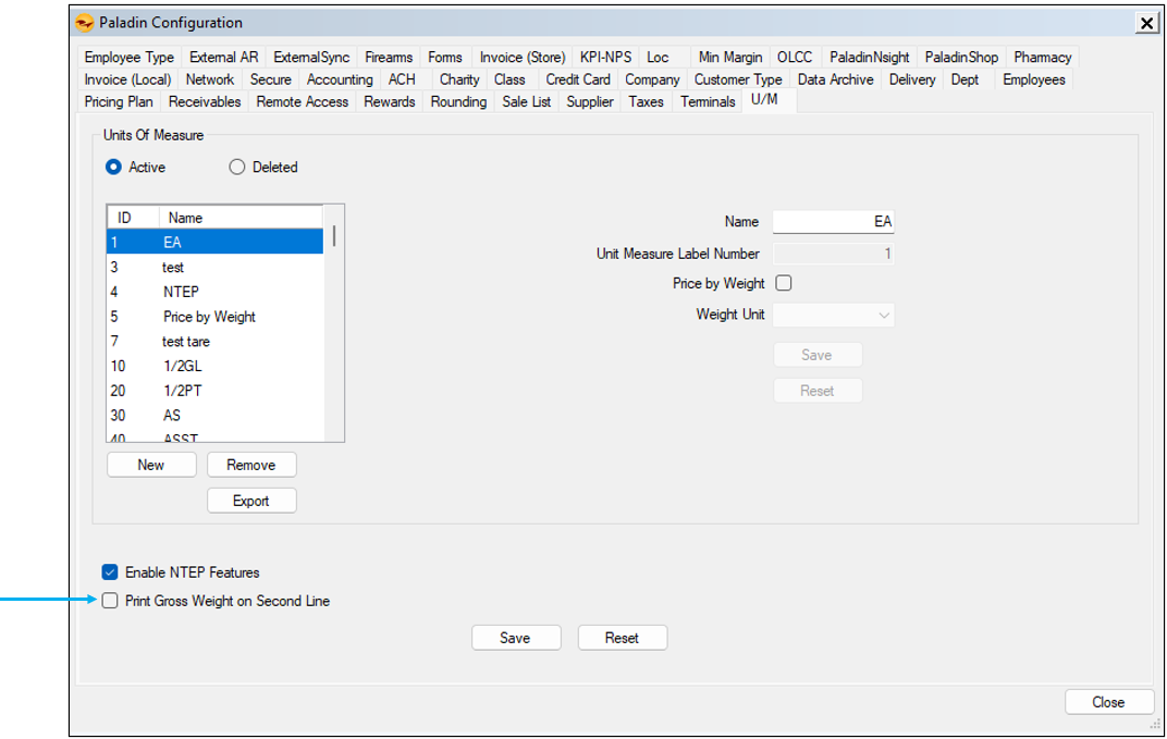 - In the Units of Measure pane, check Enable NTEP Features.