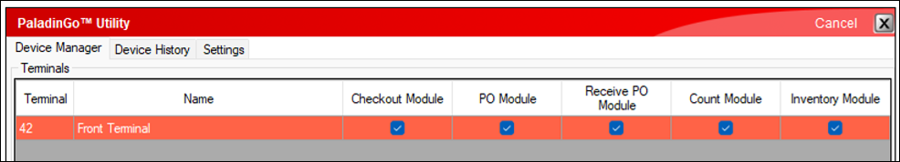 - In the PaladinGo™ Utility window, in the Device Manager tab, check each module desired for the device.