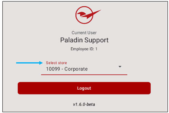- Person icon – Shows Employee ID, version of the app, and is where you Logout of the app. The location (store) is selected from the Select store list.