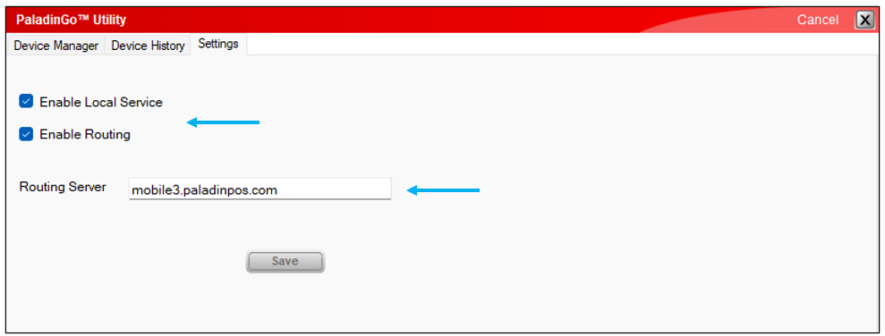 - In the Routing Server box, check that the default is mobile3.paladinpos.com