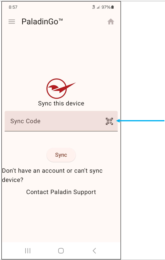 - On the device, in the Sync this device page, tap the QR code icon in the Sync Code field.