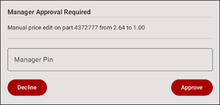 If the Price Change is below the margin for the item, the Manager Approval Required message opens.