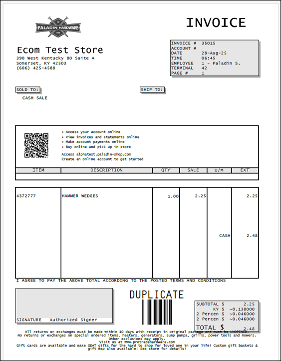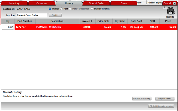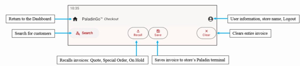 - Disk icon saves the invoice in the store’s Paladin terminal.