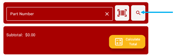 - Enter either a part number or a description of the part in the Search field, then tap the Magnifying Glass icon next to the description field.