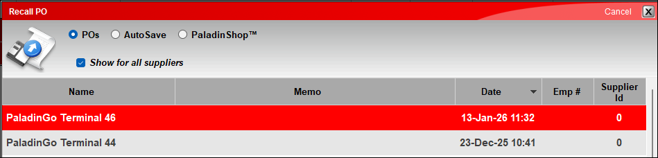 - On the bottom ribbon of the module, select F6 Recall PO.