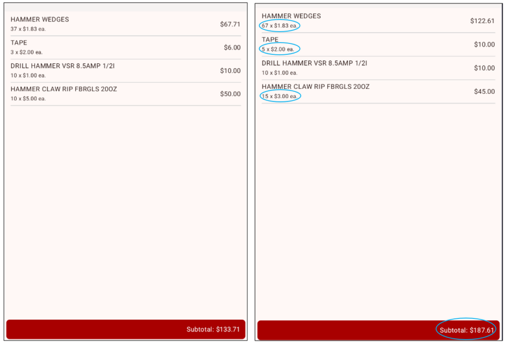 To make a change to the Qty or Cost, tap on the item, make changes, and tap the green floppy disk icon to save the PO to the Paladin terminal.