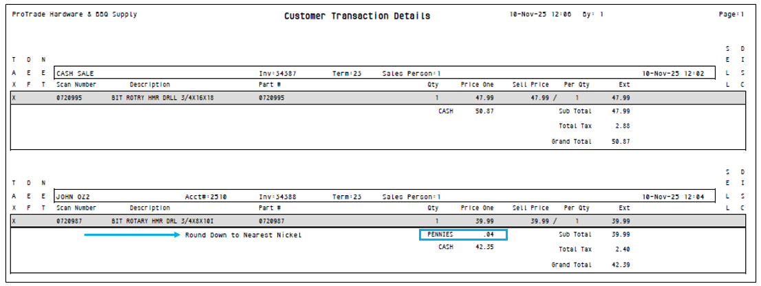 Figure 4: Customer Transaction Report with Round Down to Nearest Nickel