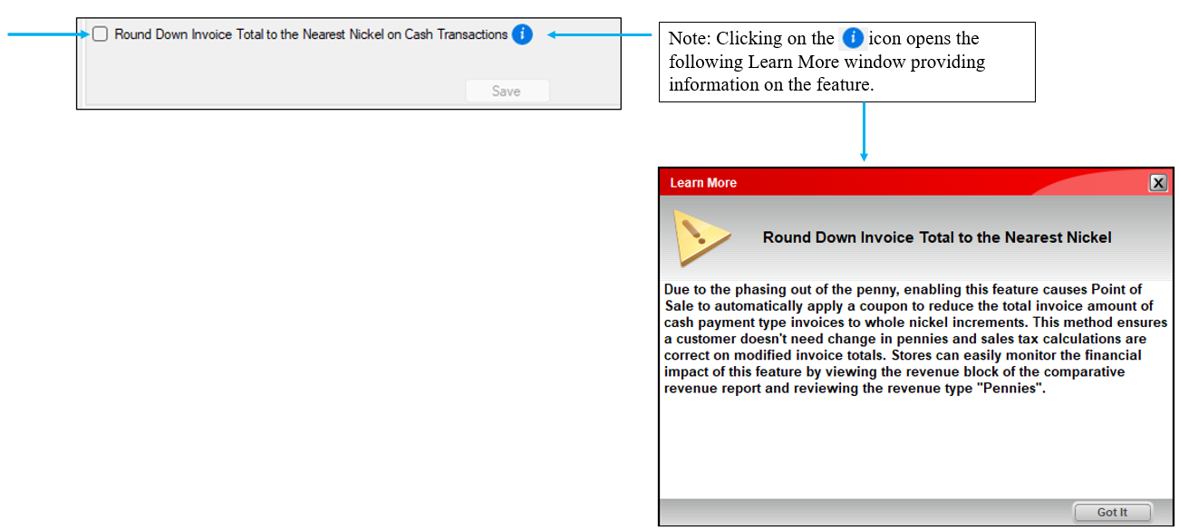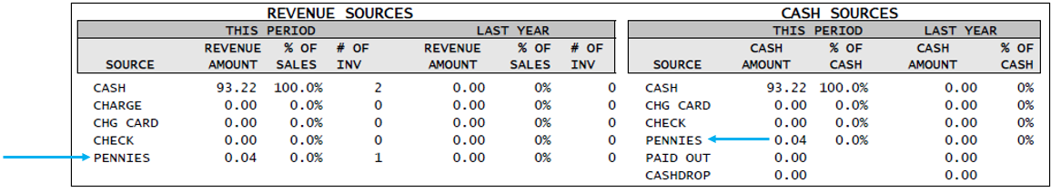Due to the phasing out of the penny, enabling this feature causes Paladin to automatically apply a coupon to reduce the total invoice amount of cash payment type invoices to whole nickel increments. This method ensures a customer doesn’t need change in pennies and sales tax calculations are correct on modified invoice totals. Stores can easily monitor the financial impact of this feature by viewing the revenue block of the comparative revenue report and reviewing the revenue type “Pennies.”